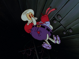 - "Drive Thru" - After Mr. Krabs hammers multiple holes into the wall, The Krusty Krab becomes a pile of dirt.